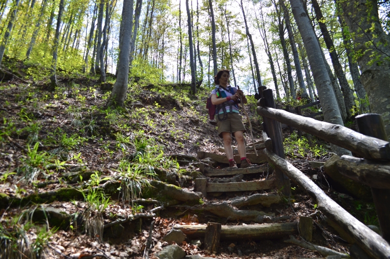 Gisella lungo il sentiero...la secona ascesa e' fatta,si va verso la Tauffi..il tempo e' stabile e soleggiato ma un venticello di bora rinfresca il corpo